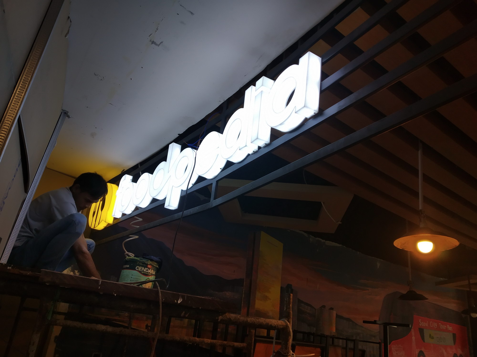 Huruf timbul akrilik nyala inddor Foodpedia Mall Panakkukang Makassar