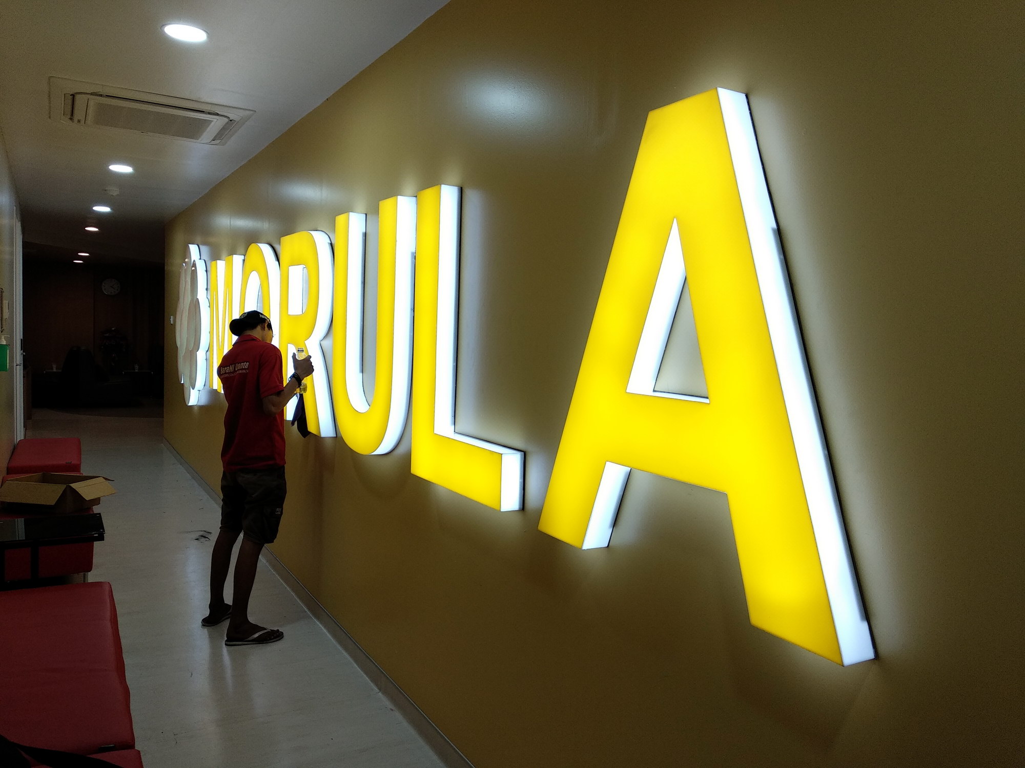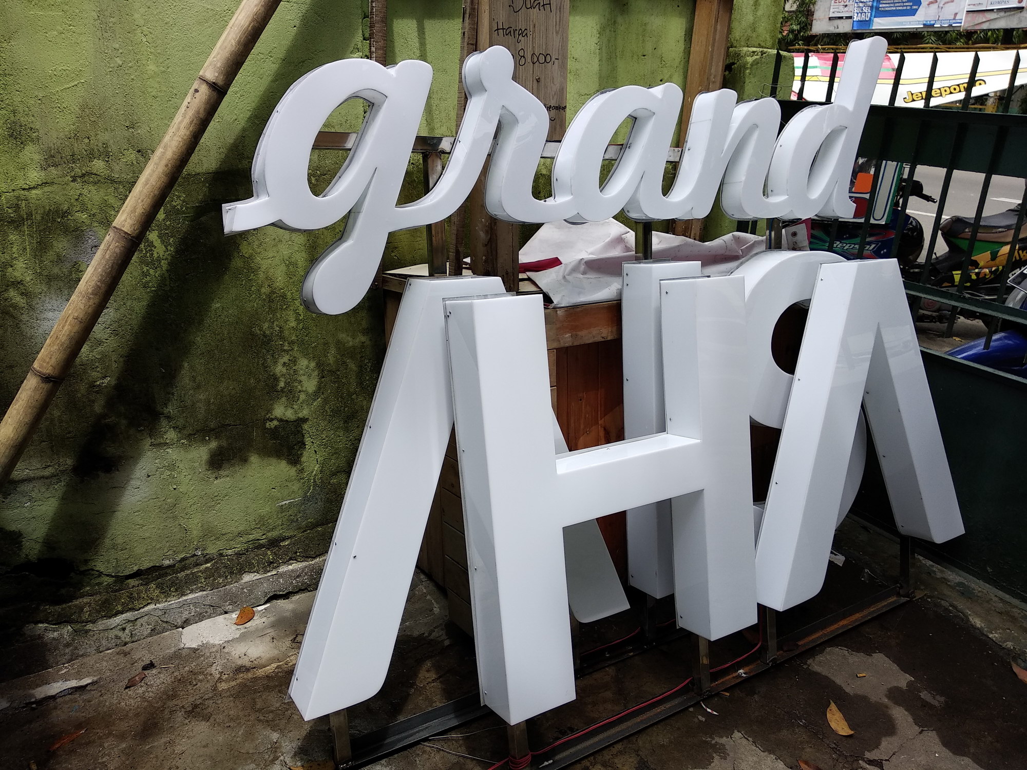 Huruf timbul akrilik menyala depan (berarti menggunakan lampu LED didalamnya)