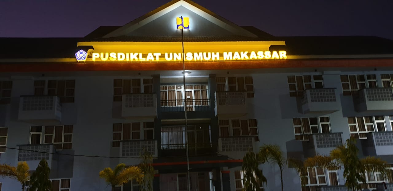 Huruf timbul akrilik nyala berdiri Pusdiklat Unismuh Makassar