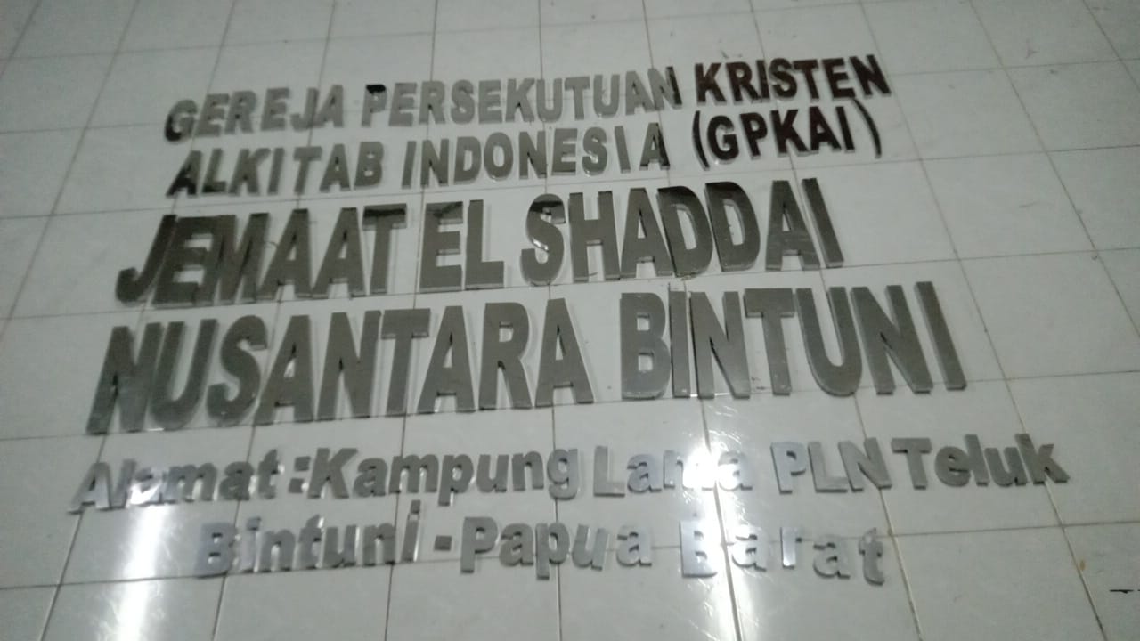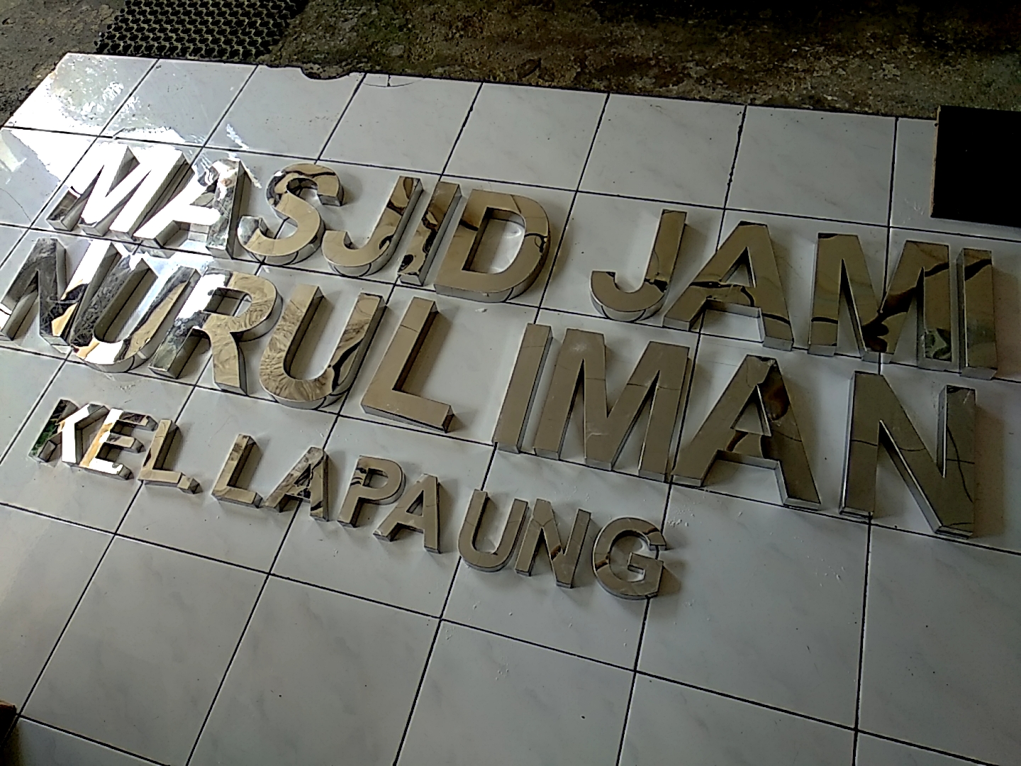 Huruf Timbul Stainless Steel kilap pesanan Masjid dan TPA AL AMIN Merauke Papua