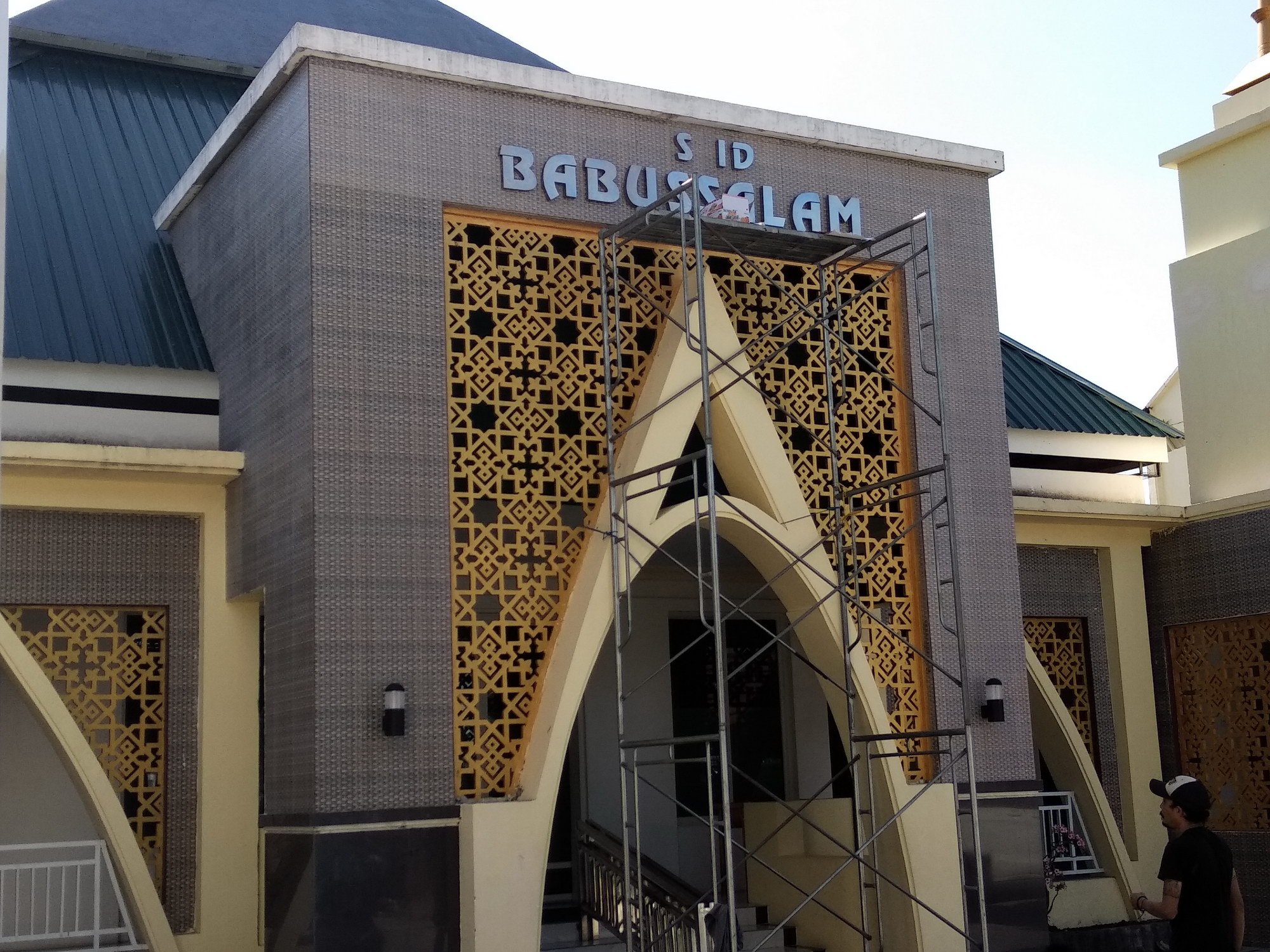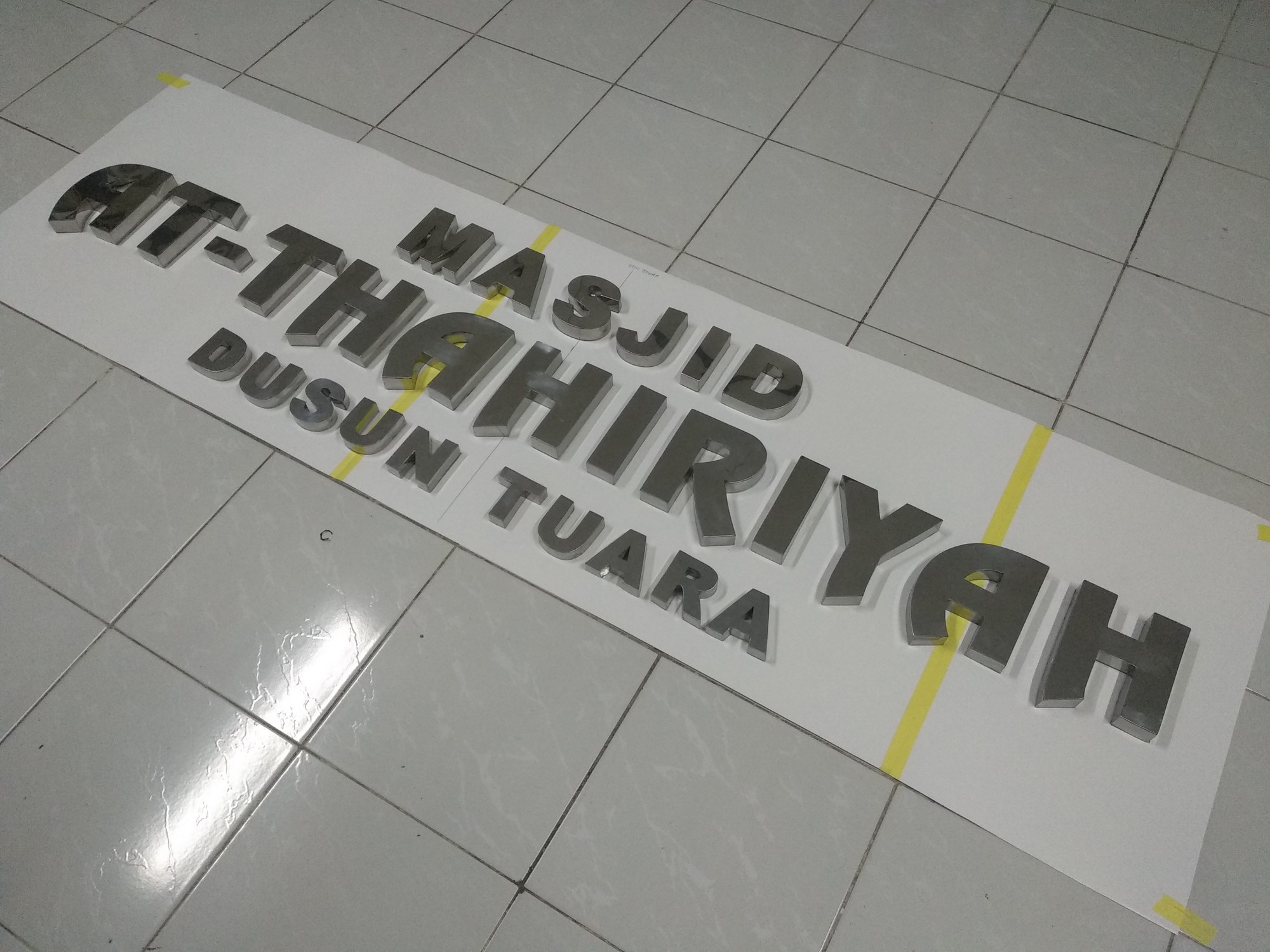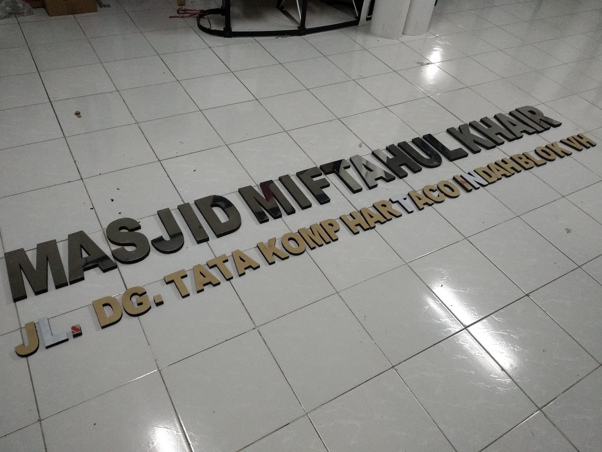 Huruf timbul stainless spons masjid Miftahul Jannah Jl Dg Tata Makassar