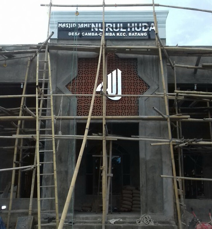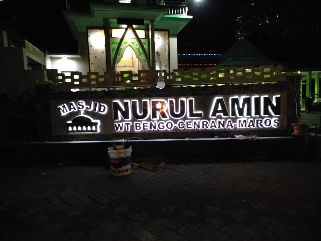 Huruf timbul stainless backlighting masjid Nururl Amin Camba Maros