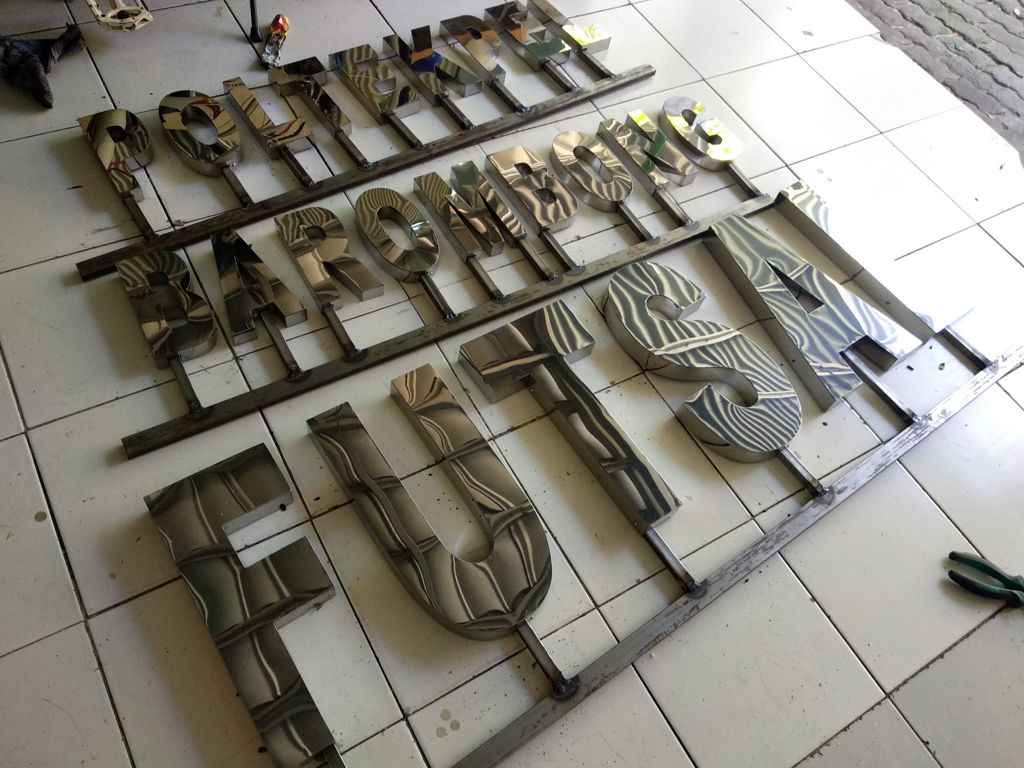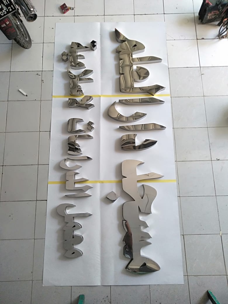Huruf Timbul Stainless Steel Tinggi 54 cm sebelum dipasang