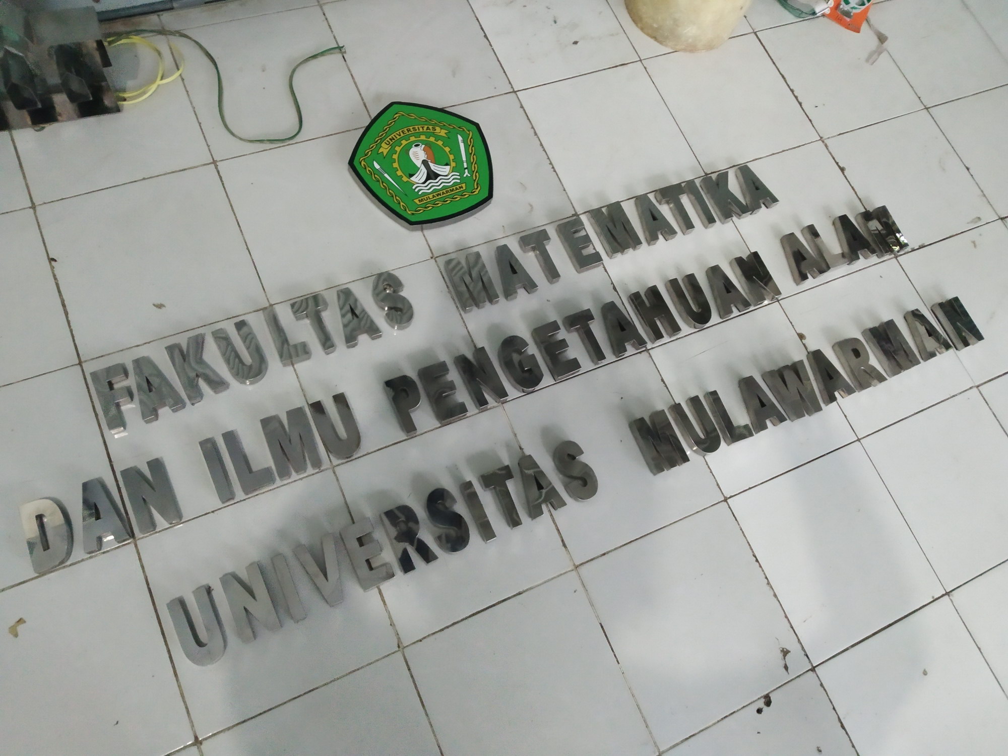 Huruf timbul stainless perpustakaan Unismuh Makassar