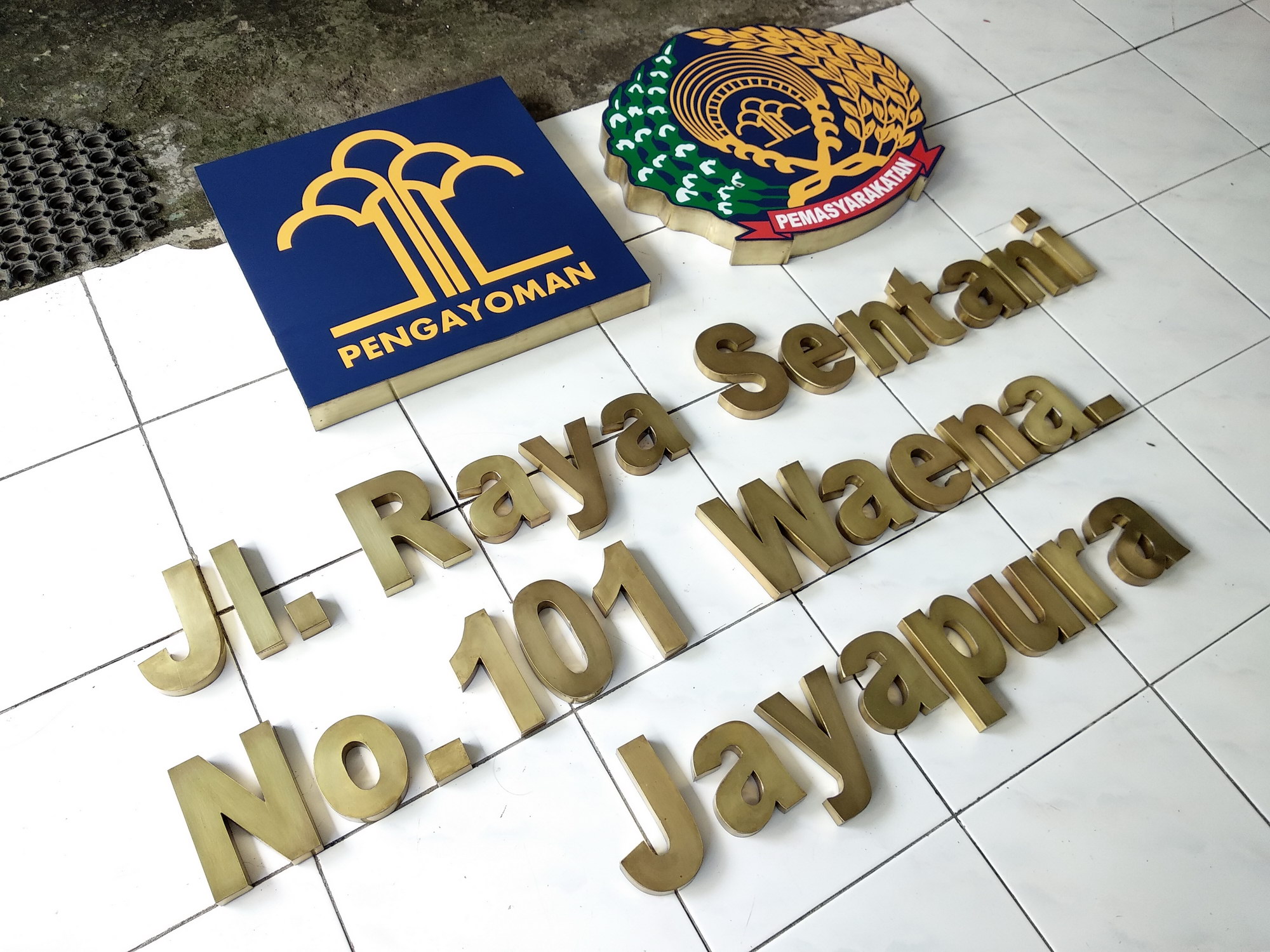 Huruf berbahan kuningan untuk kantor RUPBASAN Jayapura Papua