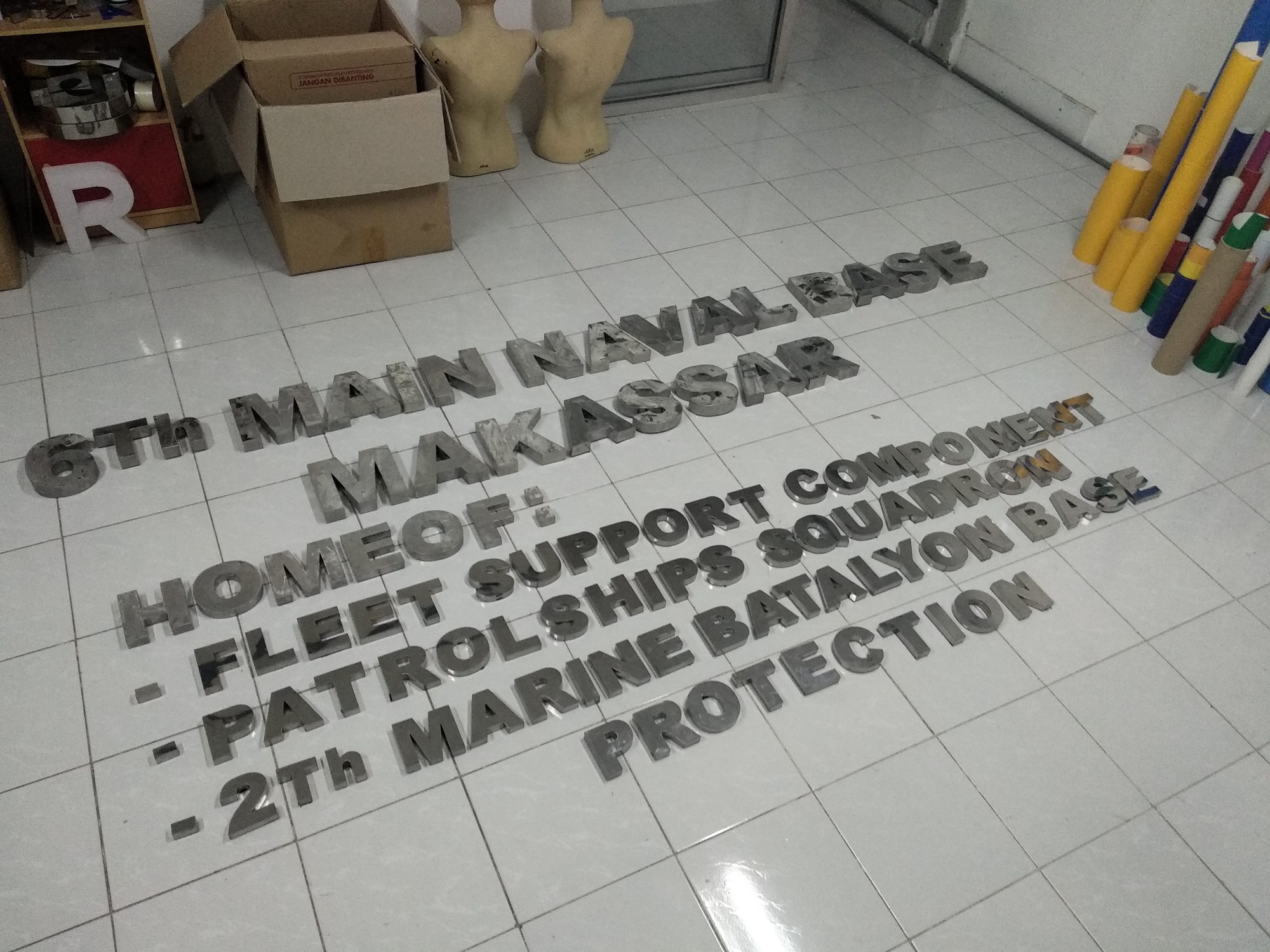Huruf timbul stainless di kantor Angkatan Laut Makassar