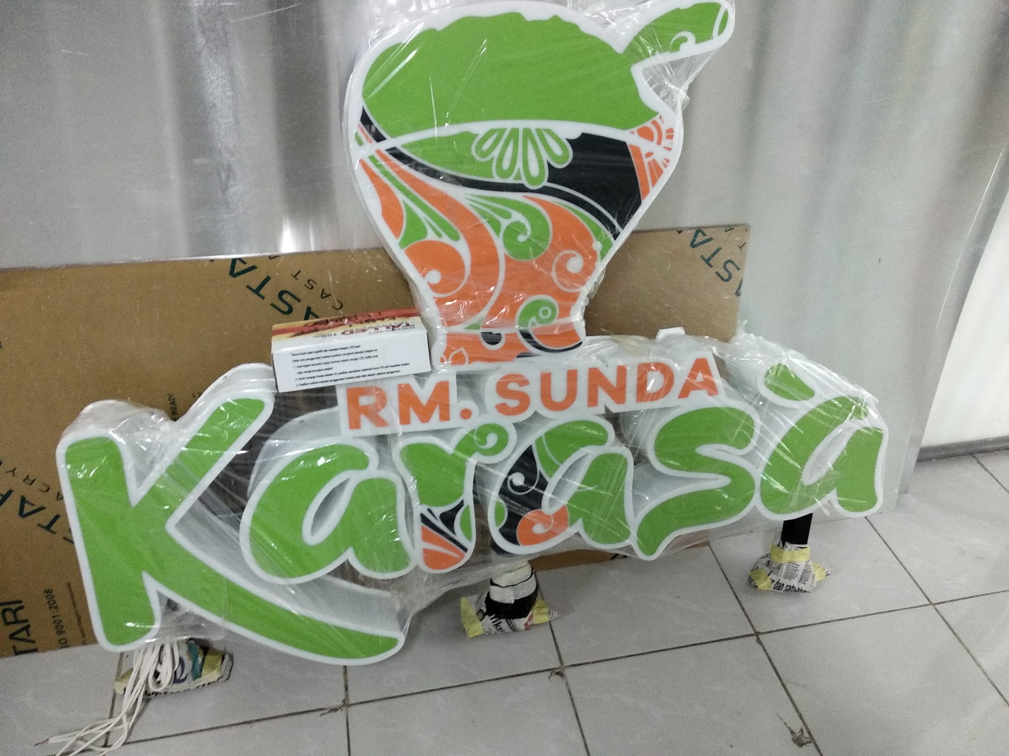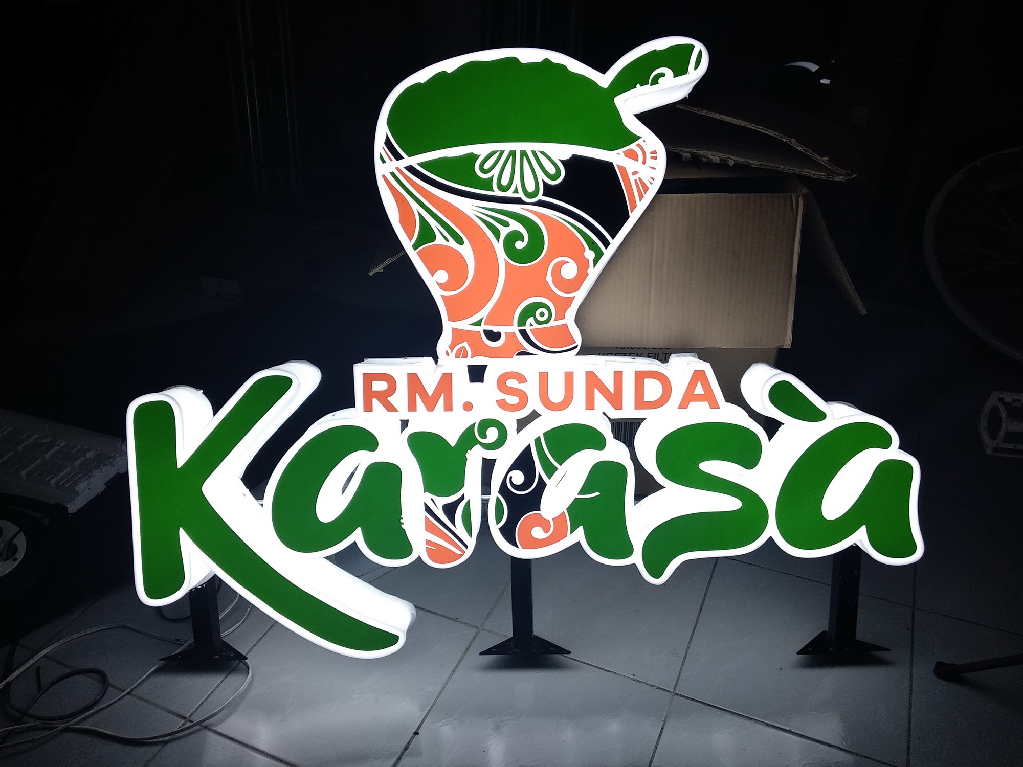 Huruf timbul akrilik menyala RM Sunda Karasa di Bone