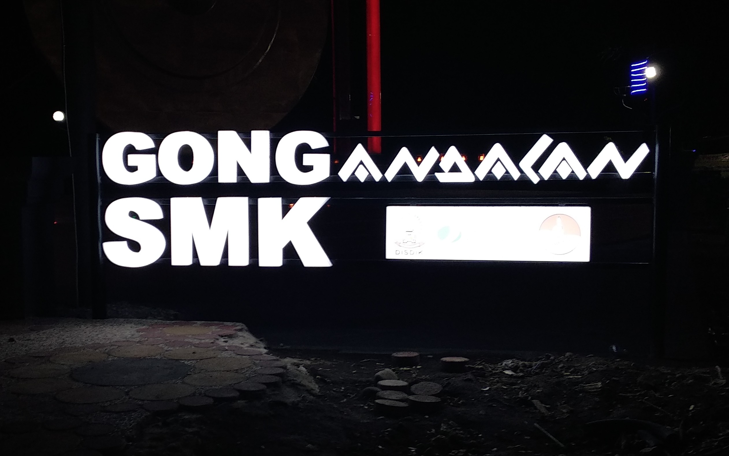 Huruf timbul akrilik menyala Gong SMK Makassar