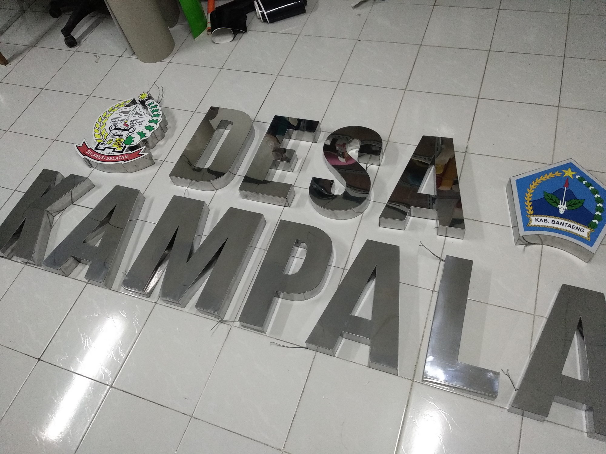 Huruf timbul stainless spons untuk kelurahan Tagari Tana Toraja