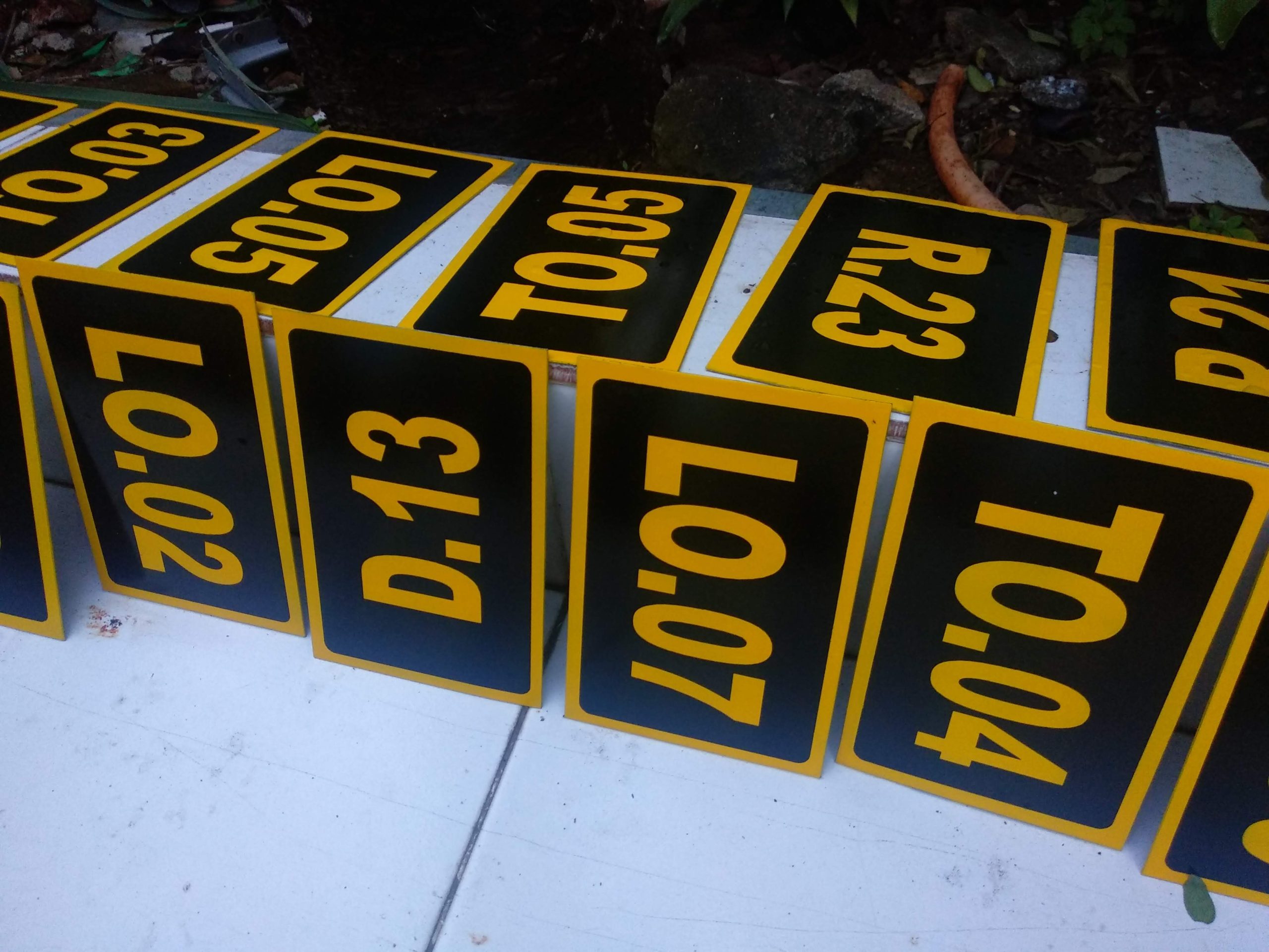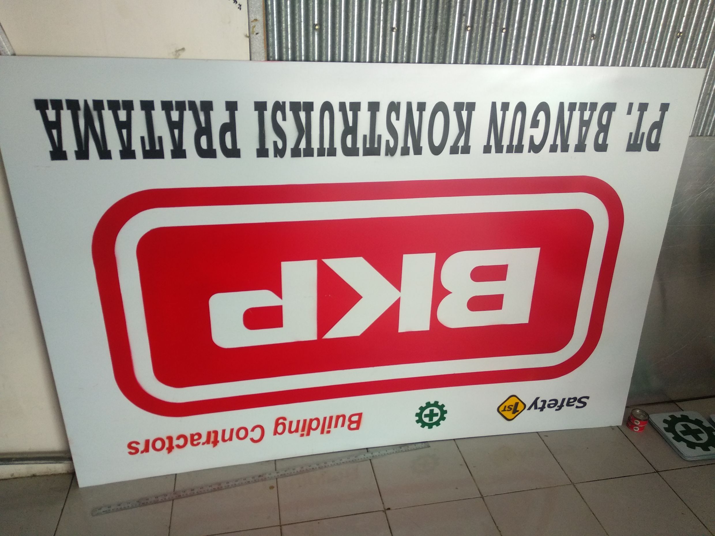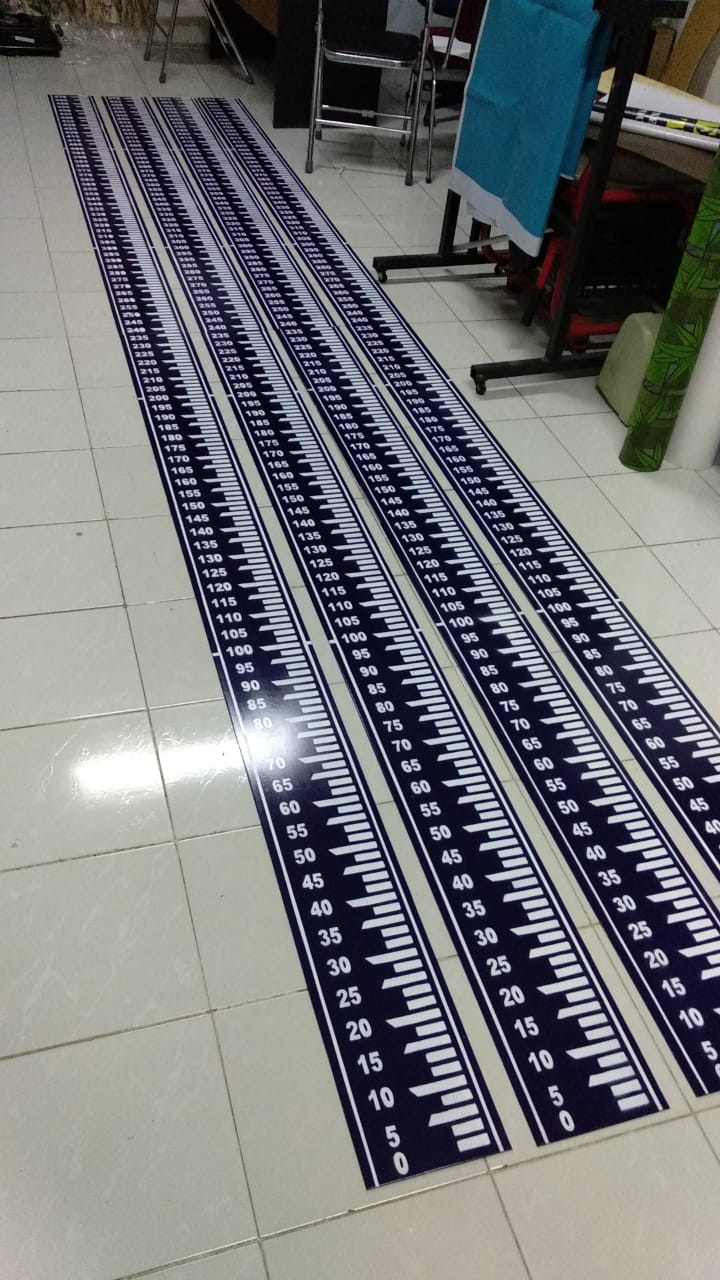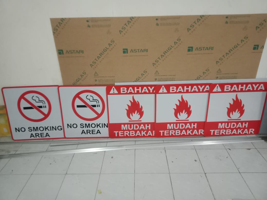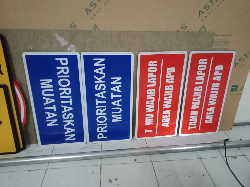 Untuk rambu-rambu outdoor atau luar ruang plat penampang bisa menggunakan plat pluminium, plat galvanis hingga plat aluminium composit. Tentu dengan ketebalan yang disesuakian dengan ketentuan spesifikasi, ukuran maupun budgeting. Yang umum mulai ketebalan 0,7mm sampai dengan 2mm atau 4mm jika pakai Plat Aluminium Composit. Sementara untuk rambu-rambu Indoor pilihan bahan bisa menggunakan akrilik maupun PVC board.